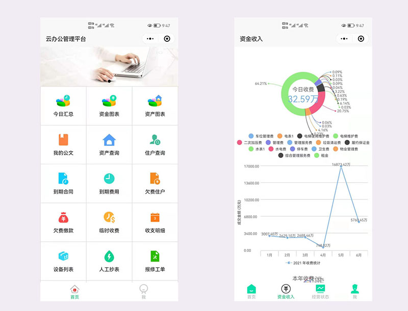 .物管王是一套成熟的智慧社區物業管理平臺,國內第一家微GIS圖形化開發平臺,適用于物業小區、門面房商鋪、廣告位、停車場和車位等物業的信息化綜合管理,實現從物業住戶資料、收費、報修、投訴到辦公OA等全流程化管理;軟件具備電腦端和移動手機端APP,具備在線繳費、在線報修投訴功能。